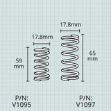 Universal D17.8mm x L59mm or D17.8mm x L65mm steel valve springs. Fits John Packer low brass,