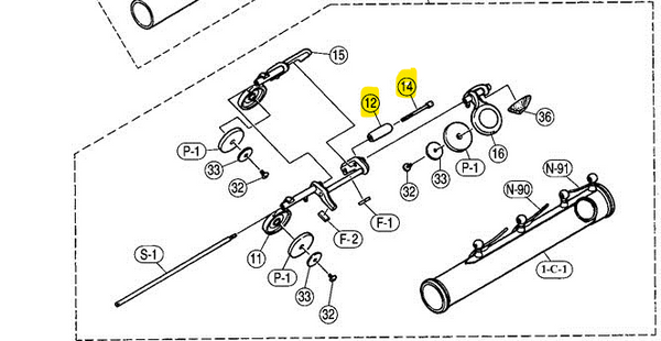 Yamaha flute, C key roller & shaft set for many popular Yamaha flutes. Contact me if you wish to verify your model's fit or you need other parts.